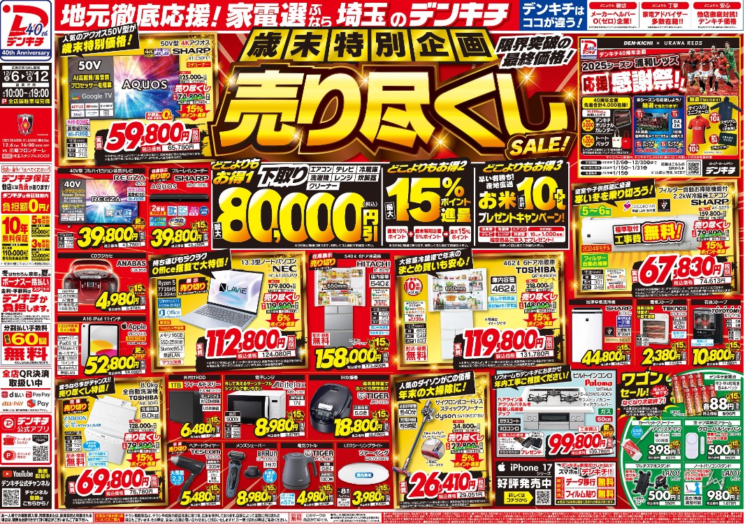 はっぴーホームタウンでんきちです。 最新のデンキチチラシ情報を提供します。 ※さいたま中央店 東